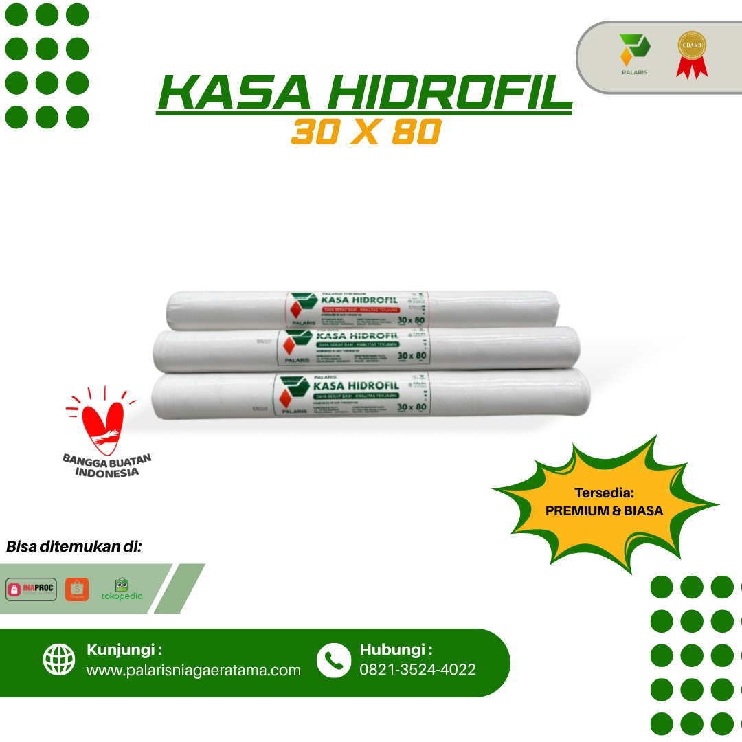 Kasa Hidrofil Roll Ukuran 30 x 80 dengan pilihan premium dan biasa